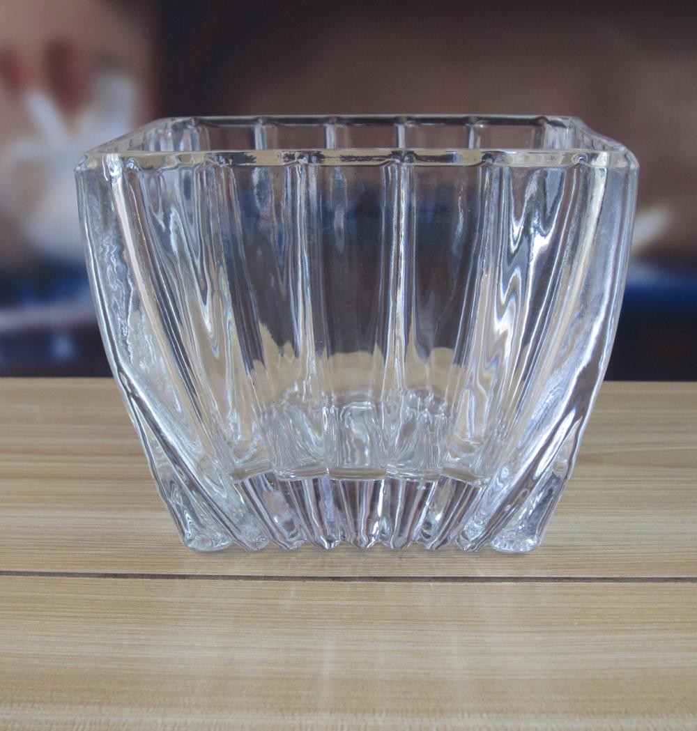 Το τετραγωνικό κύπελλο καραμελών γυαλιού κρυστάλλου με το καπάκι φορμάρισε τα οπτικά βάζα αποθήκευσης γυαλιού λωρίδων